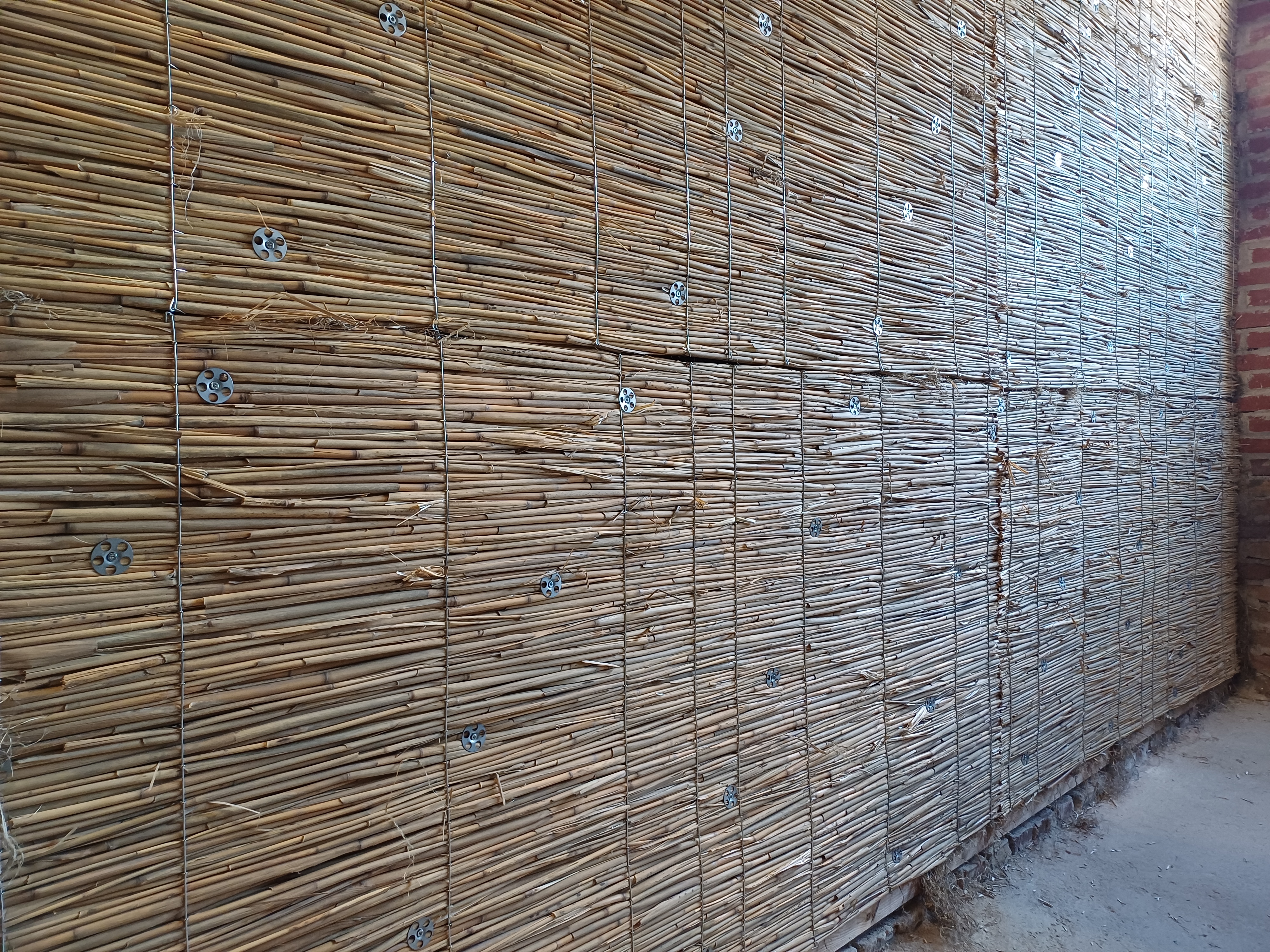Die mit Stopfhanf ST50 gedämmten Flächen werden auch der abschließenden Seite wieder mit Reetplatten 20 mm wie bereits gegenüberliegend verschlossen.