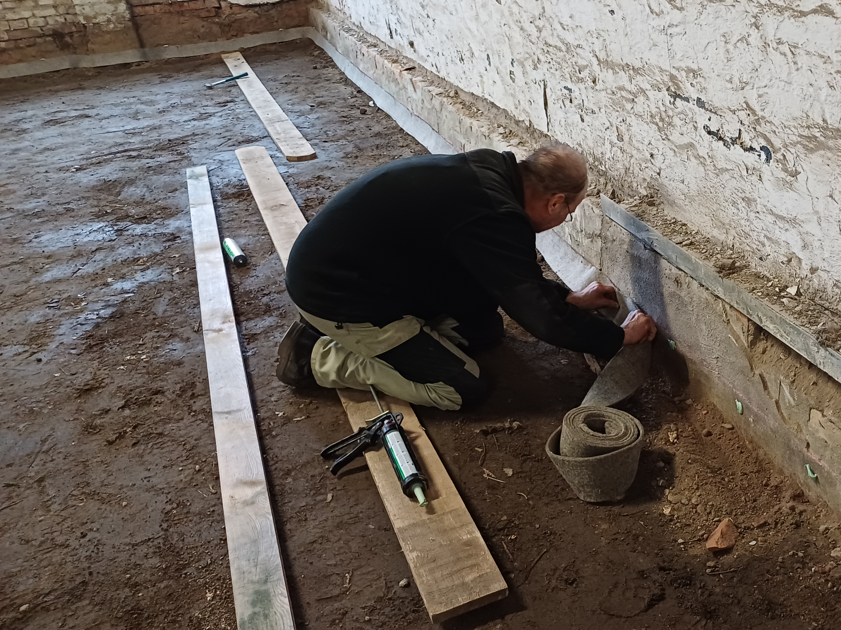 Speziell auch zwischen dem Grundbalken und dem Grundmauerwerk bzw. der Bodenplatte.
