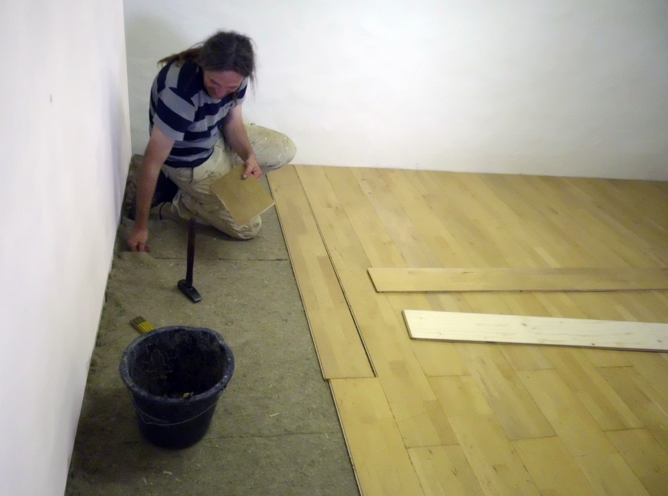 Die optimale Trittschalldämmung wird durch vierfach im Kreuz verlegte 5 mm - Akustikmatte erzielt. Die Bauteildicke beträgt unter Last dann 17 mm.